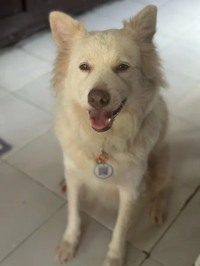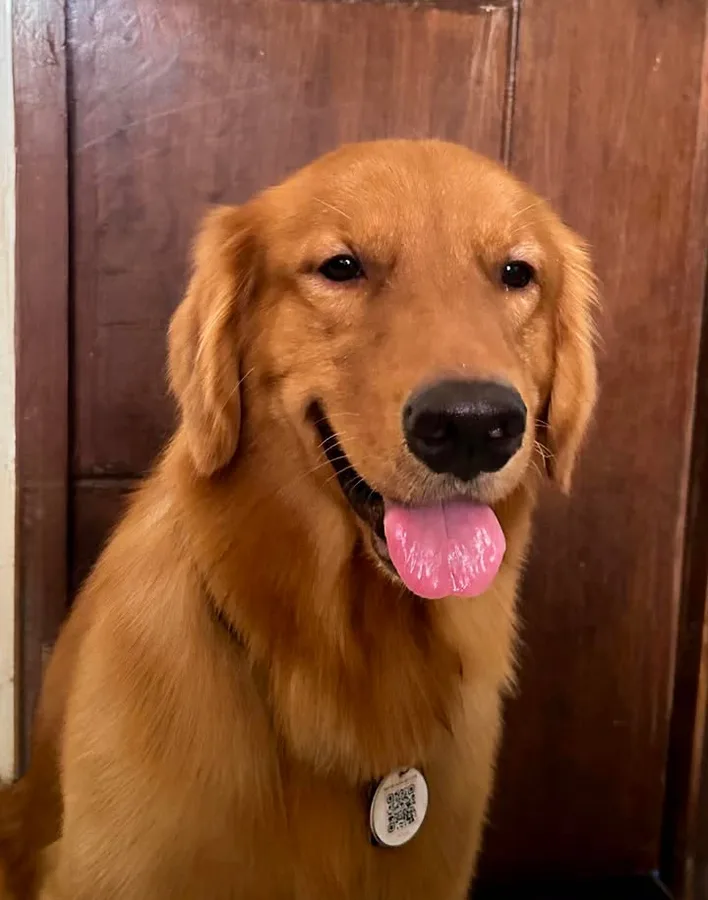 "Alpha, the Golden Heartthrob! π This fluffy charmer's too busy stealing hearts (and tennis ball) πΎ to notice he's wandered off, but his PetlyFinder SmartPet Tag has him covered! "