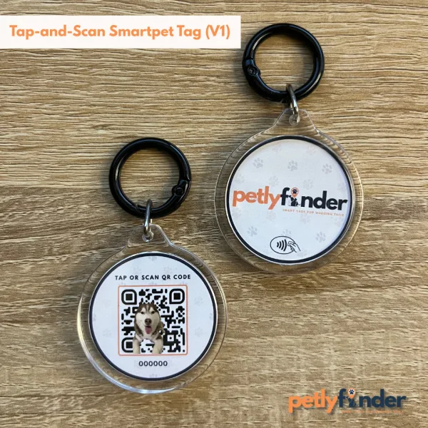 Acrylic SmartPet Tag V1βtap or scan QR for instant pet profile access. Free PetlyFinder app, no subscription, 1-month replacement for peace of mind.